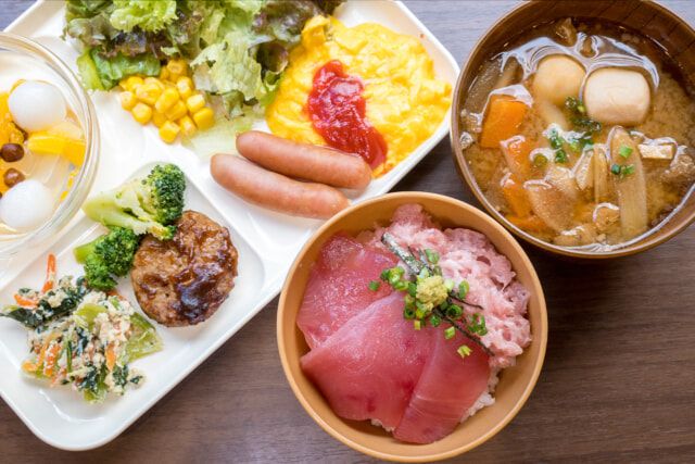 ▲美味しいホテル朝食。目玉は「マグロ丼」