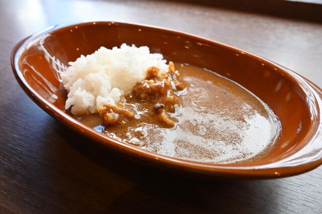 「朝カレー」もお見逃しなく。肉や野菜など具材のコクもたっぷりで、ちょっとスパイシー。ウインナーなどお好みでトッピングしても楽しめます。