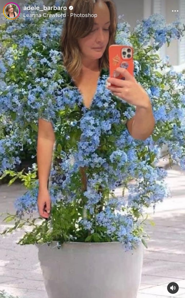 鉢植えの中に入ってリアル花柄ワンピースを着るAdeleさんの画像を返信。