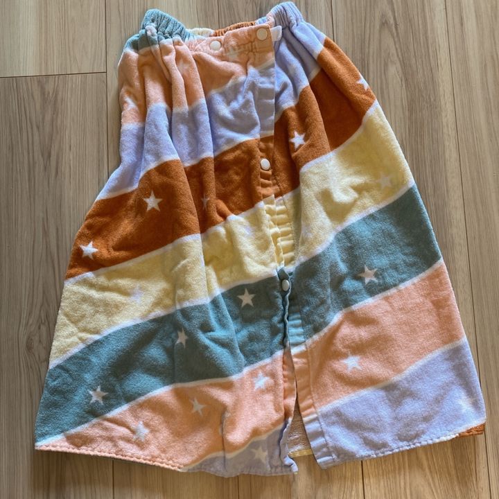 保育園のプールにてラップタオルが必要とのことで、あれこれ検索。なかなか気に入るのがなく(※本人ではなく、母が)、検索しまくって見つけたのがこちら。UNITED ARROWS green label relaxingのもので、丈も60cmと80cmがあって◎。一番上のスナップが2箇所あるのも気がきいています。内側に大きく名前を書くところもあり助かりました。タオルの質感も気持ちよく、大満足です。可愛いラップタオルをお探しの方、ぜひ!