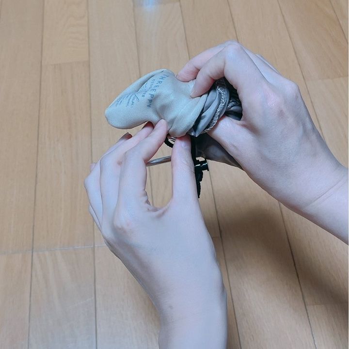 しまうときは裏返して、ギュッ! ギュッ! ギュッ!
