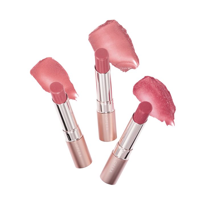 左:軽いリキッドタイプのリップバーム。赤みにミルキーさが加わり、柔らかい質感の唇に。新4色。右:上質なワインのような深みと甘さのあるピンクのコントラストは大人の目元に似合う。全2色。