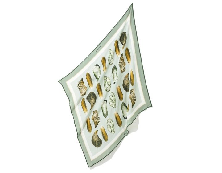 貝殻をモチーフにしたグラフィカルな大判スカーフ。