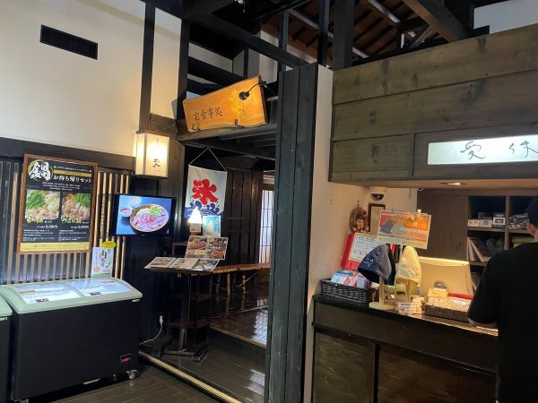 フロントの左奥が、これまた雰囲気抜群!お目当ての お食事処 棗。 館内はワックスの効いた木の床で、また、段差が多いので、はやる気持ちを抑えてゆっくり行きましょう!