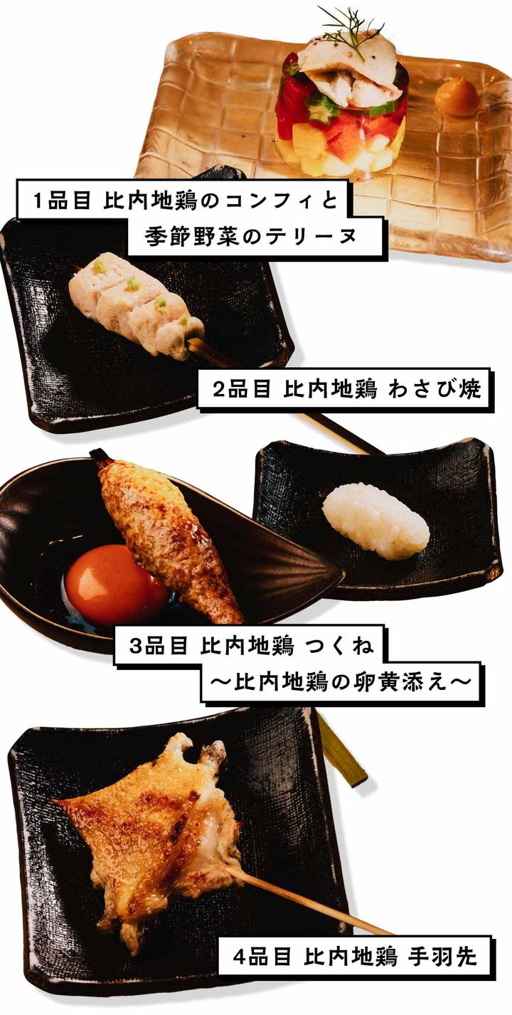 【3品目 比内地鶏 つくね ~比内地鶏の卵黄添え~】