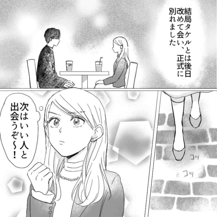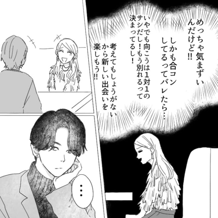 主人公は付き合っていた彼氏と別れることになりました。そのことを友達に伝えると合コンに誘われ、一緒に行くと・・・。