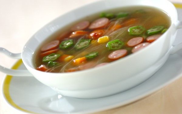 オクラでお星さま、春雨で天の川をイメージした七夕らしいスープです。オクラの粘りでとろみがつき、ソーセージの旨味が効いて、ほっと落ち着く味わいに仕上がります。具だくさんで食べ応えも◎。