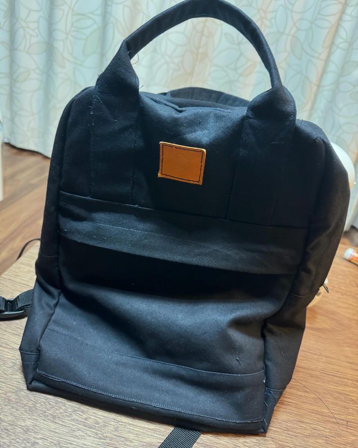 リュックになった時はさすがに感動しました。と同時に、ちゃんとできていないところもあり、反省することも多々あります。こちらは肩掛けにかける部分がちゃんと縫えていませんでした。ただでも。この感動は作った人間にしか味わえない!