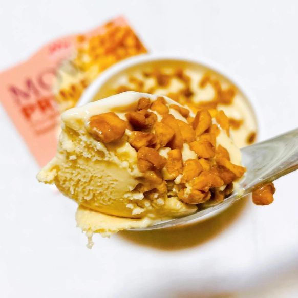 ちょっぴり贅沢な大人の味を楽しみたいなら、「MOW PRIME ヘーゼルナッツ&キャラメル」がおすすめです。ほろ苦いキャラメルアイスは、濃厚でコク深い味わい。薄いキャンディでコーティングされたヘーゼルナッツのカリッとした食感がアクセントになります。ナッツ好きさんはぜひ食べてみてくださいね♡