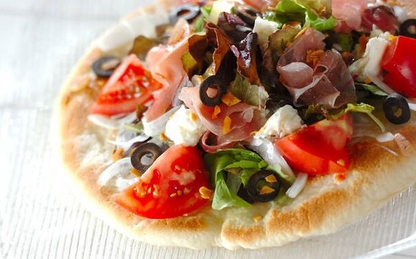 米粉入りのピザ生地はもちもちとしてやみつきに! あっさりめの具材で仕上げるため、メイン料理の邪魔をすることなく、前菜やおつまみとしても楽しめます。