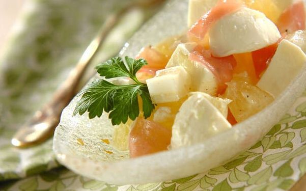 グレープフルーツの酸味がさわやかなサラダ。歯ごたえのあるセロリが食感にアクセントを加えてくれます。見た目も涼やかで、夏のパーティーシーンでも重宝しそう。よく冷えたワインと一緒に召し上がれ!