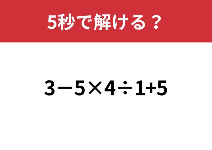 大人が正解できない意外な難問!?「3−5×4÷1+5」5秒で解ける?