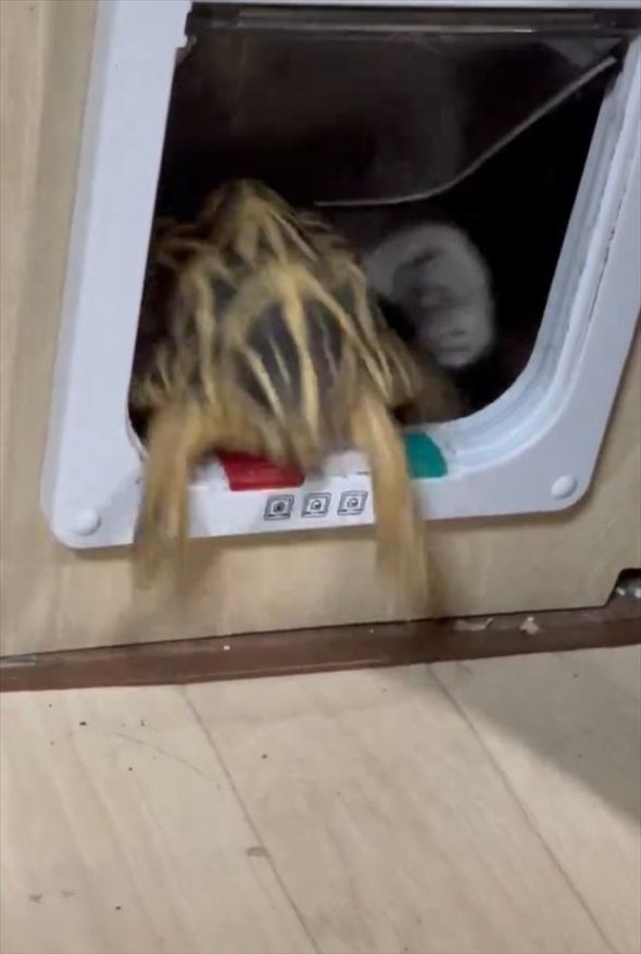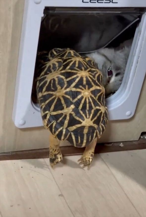 3. 「猫の手も借りたい」どころか、ホントに貸してもらってる!?ペットドアで奮闘するカメに救いの手!!