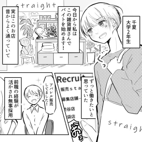 主人公はずっと働きたいと思っていた雑貨屋でバイトを始めました。