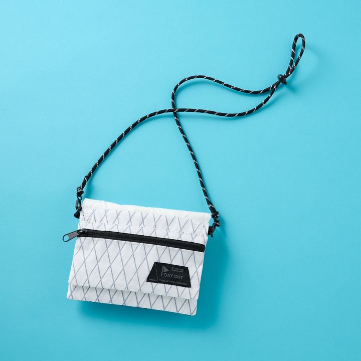 エコバッグがサコッシュの一体型。普段はサコッシュとして、旅行や想定外に荷物が増えた時にサブバッグとしてサっと展開できて助かります。ナイロン製でガシガシ使えて、丸洗いも可能なのでアウトドアにももってこい。サコッシュにはファスナーポケットがあり財布としても使用でき、また背面のメッシュポケットにはスマホ(iPhone12)もすっぽり入るのでご近所や公園へはこれ1つで完結です。サコッシュ¥4,950(DAYOUT)