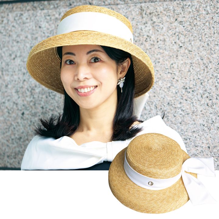 Chapeau d’ Oのカサブランカハットは麦わら帽子なので軽くて涼しく、カーブしたつばがエレガントで上品。周りからの評判も◎。