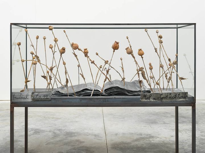 Anselm Kiefer Mohn und Gedächtnis–für Paul Celan / 粟と記憶―パウル・ツェランのために / Poppies and Memory–for Paul Celan, 2014, Steel, glass, lead, resin, shellac, zinc, and charcoal, 60 × 707/8 × 271/2 inches (152.5 × 180 × 70 cm)Photos: Georges Poncet