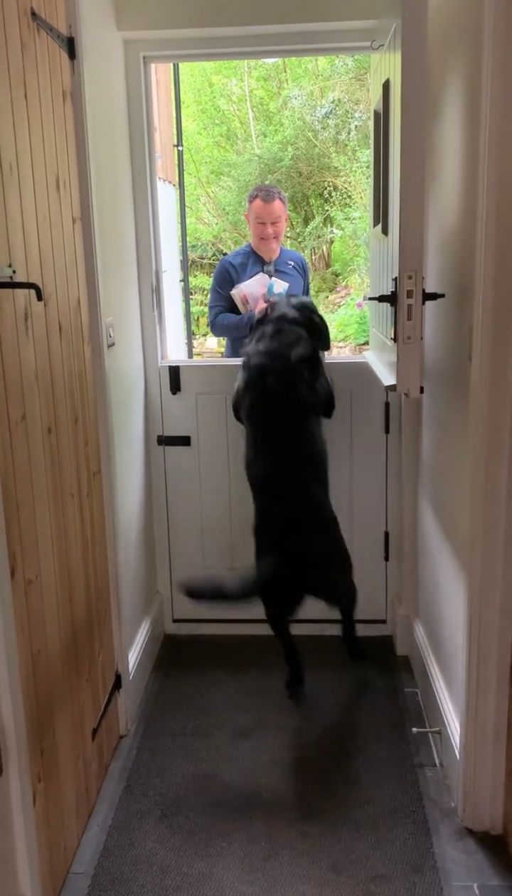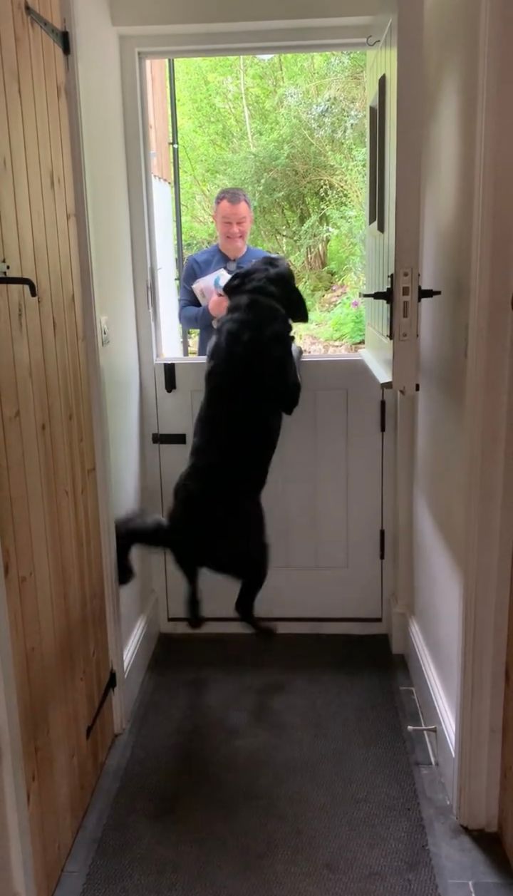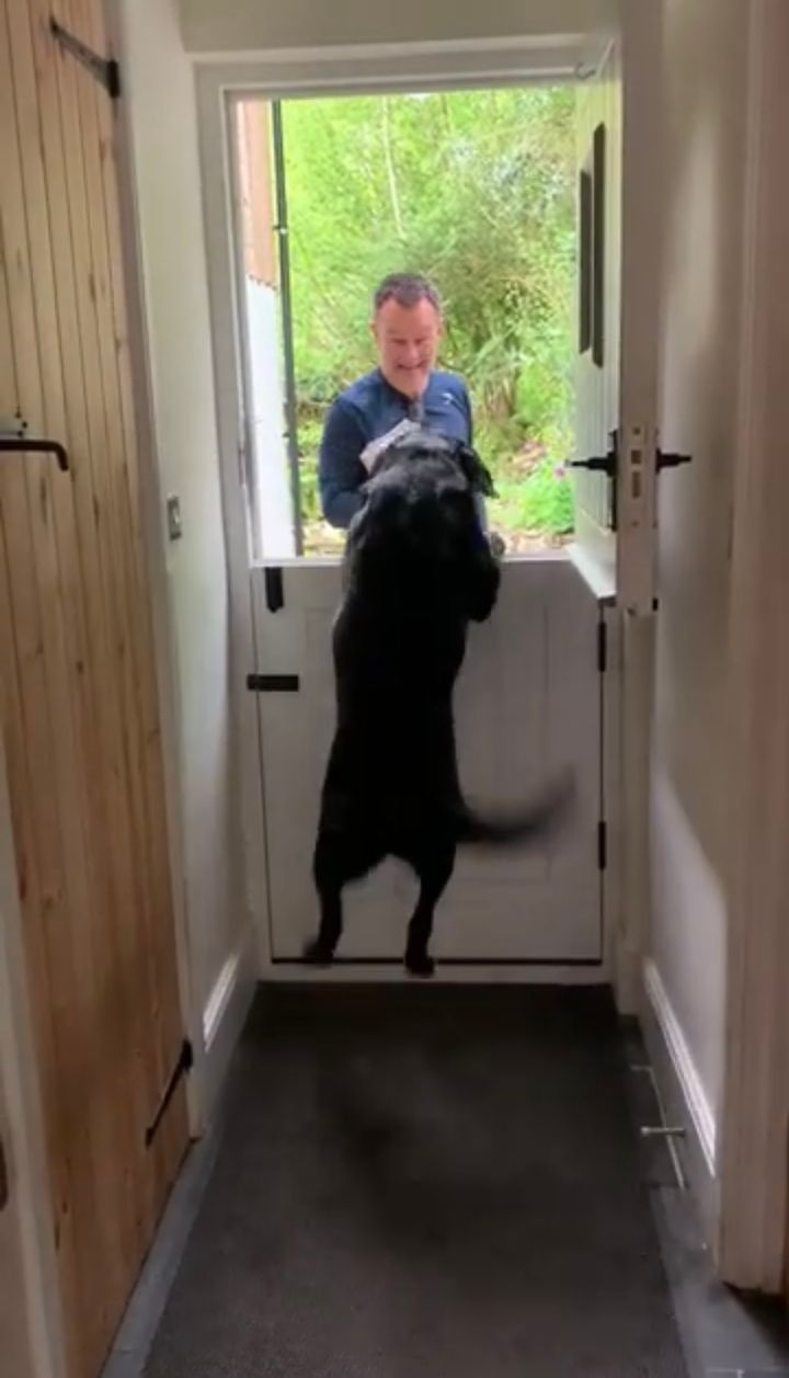 パパさんが帰ってきて大喜びのラブラドールレトリバー。 この子は、嬉しさのあまりキュートなダンスを披露しました!