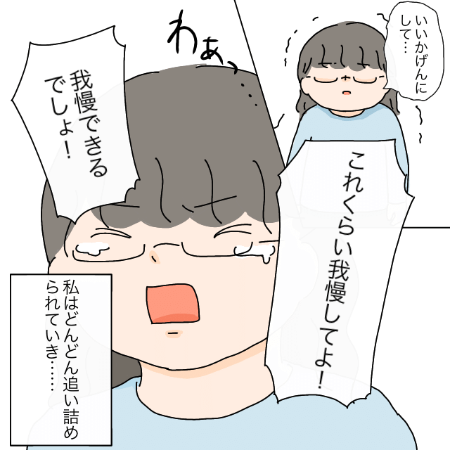 「いいかげんにして・・これくらい我慢してよ・・!我慢できるでしょ!!!!」