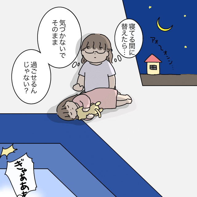「寝てる間に着替えさせたら・・気づかないでそのまま過ごせるんじゃない?」