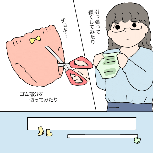 ゴムの部分を引っ張って緩くしてみたり、少し切ってみたり・・