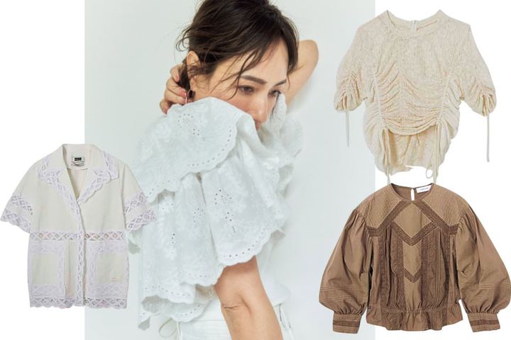「レースブラウスも豊作なのですが、ただ甘く懐かしいムードにならないようなセレクトがカギ。思いきったショート丈のデザインやシャーリングなど、トレンドの要素が取り入れられたアイテムだと、今っぽいヌケ感が出せますよ」。
