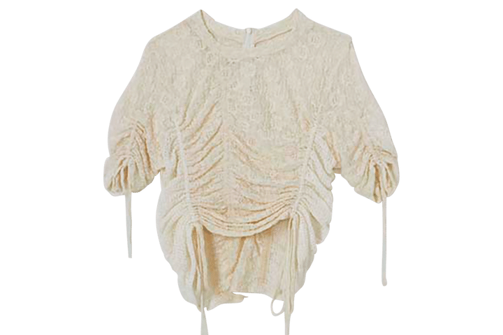 レースとシャーリングの合わせ技が新鮮。ブラウス¥14,850(メゾンスペシャル/メゾンスペシャル 青山店)