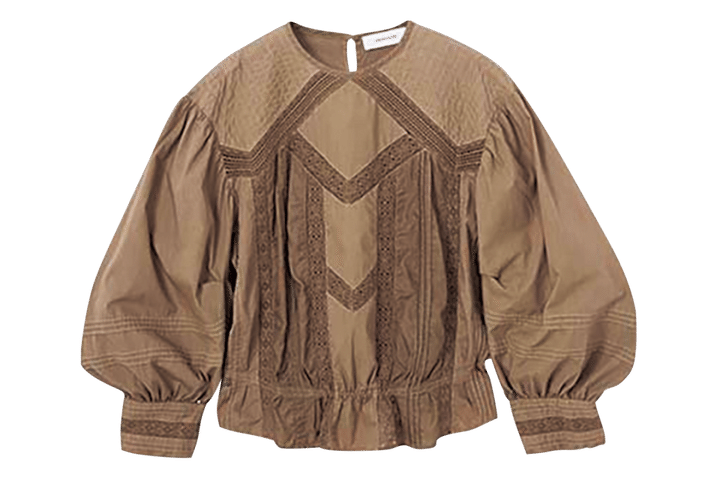 ヴィンテージライクな1枚はデニムとの相性抜群。ブラウス¥107,800(コル ピエロ ドットコム/コル ピエロ)