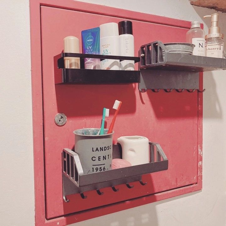 @yagigigi1234さんは、4本タイプの傘立てを小物入れとして使用。洗面所の小物を出し入れしやすくするために、傘立ての下部分のみを使っています。「傘立ての下だけだとマグネットが弱いかな?」と強度が気になるかもしれませんが、実は耐荷重量2kg!安心できる強さがあります。