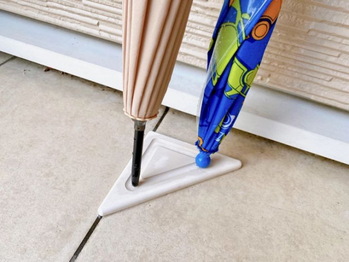 100均だからと侮るなかれ!傘から滑り落ちてくる雨水をしっかり吸い取ります。3本程度立てかけられるので、雨で塗れた傘の一時避難所として活用してみてもいいですね。