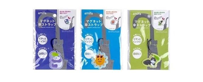 こちらは傘につけるマグネットストラップ。マグネットなので玄関にピタッとくっつきます。玄関で傘が倒れることなく収納できるのがうれしいですね。このマグネットストラップなら、子どもが自分で取り外しもできるので、小さなお子さんをお持ちの方にいいかも☆