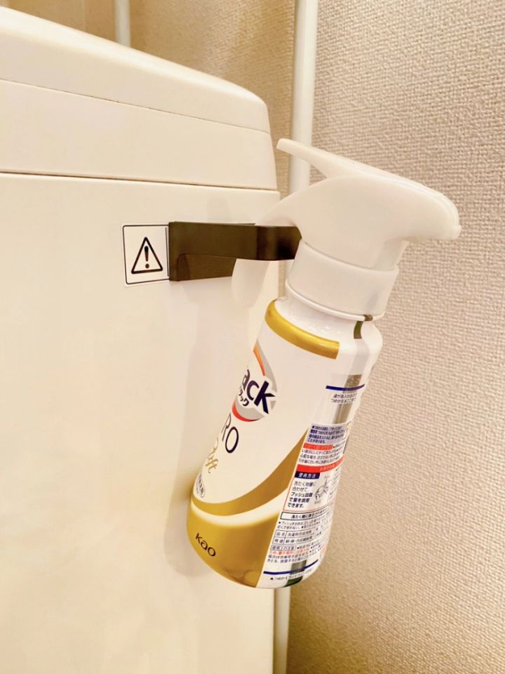 1本用傘立ての上部分を洗濯機にペタッとくっつけて、スプレーボトルホルダーとして活用。ワンハンドの洗剤もしっかりかかります!