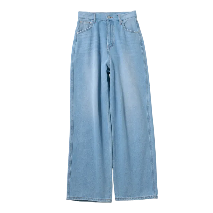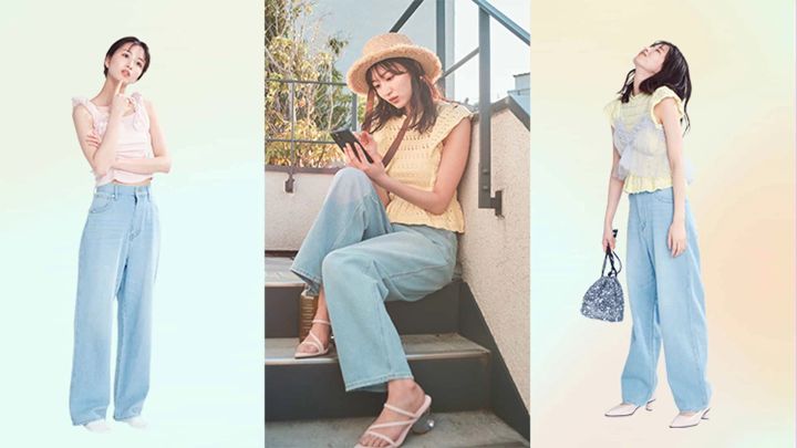 ベーシックなストレートデニムは、薄ブルーでヘルシーさをアピール。どんな服にもあわせやすいから、マストで持っておきたいクールレディの必需品!