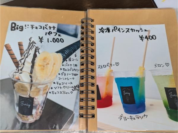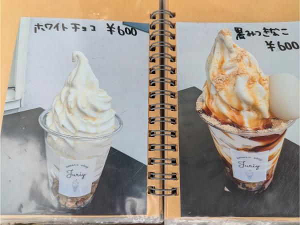 メニューはソフトクリームやパフェ、スムージーにソフトドリンクなど、バラエティに富んでいます。
