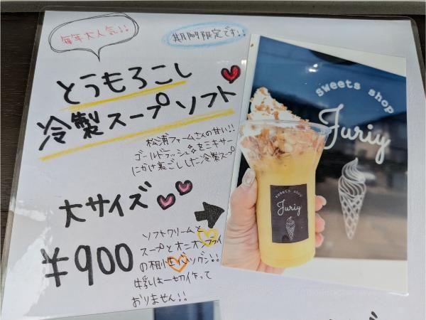 期間限定の’とうもろこし冷製スープソフト’を薦めていただきました。