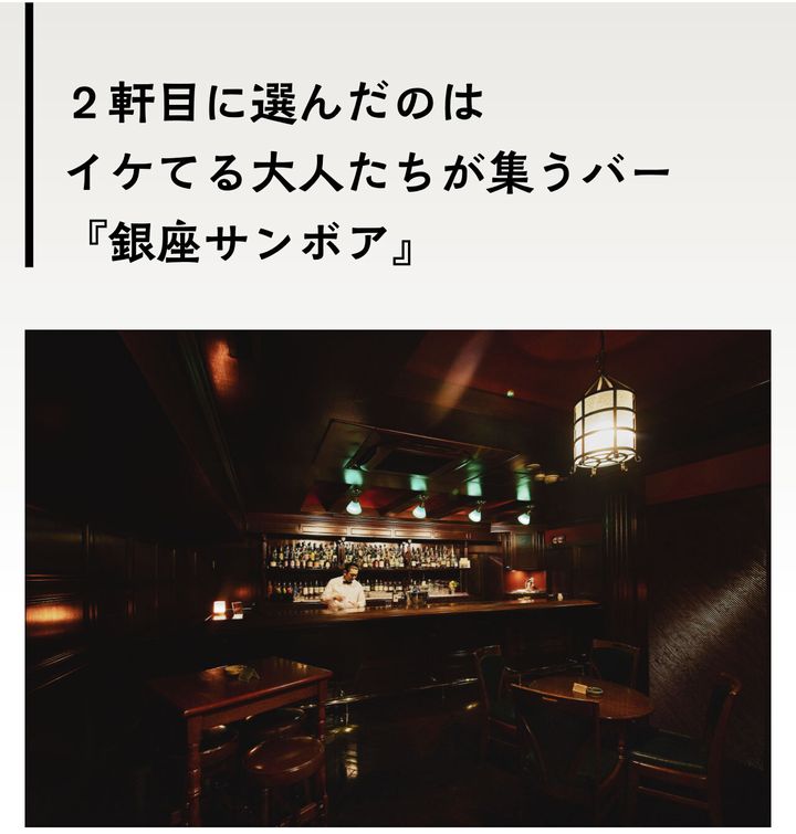 2軒目の店として竹内さんがアテンドしてくれたのは、待ち合わせでよく利用するというバー『銀座サンボア』で――。