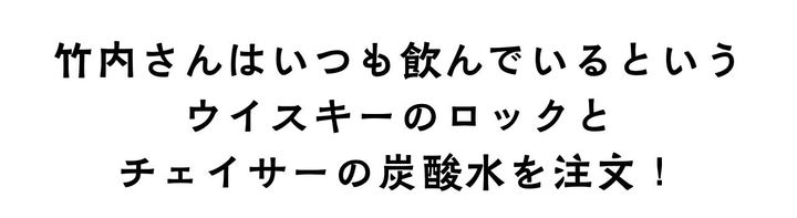 チェイサーにウィルキンソンの炭酸水を添えたが「僕、お酒にめっぽう強いんですよね。チェイサーはあくまでも体のためです」と竹内さん。