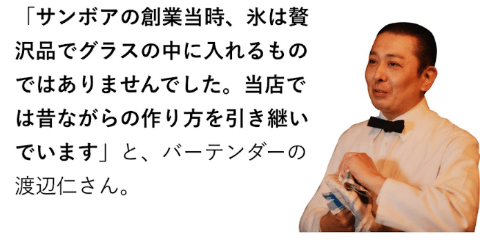 1918年に創業した老舗バー『サンボア』を起源に持ち、2003年銀座に創業。