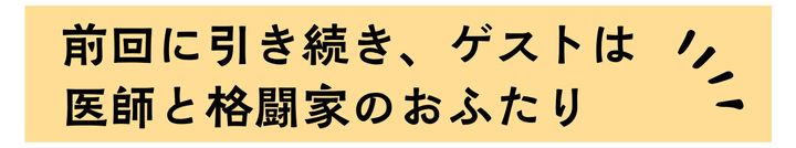 前回から引き続き、ゲストは開業医の竹内翔祐さんと、その友人で元K-1ファイターの鈴木“シャオリン”孝司さん。