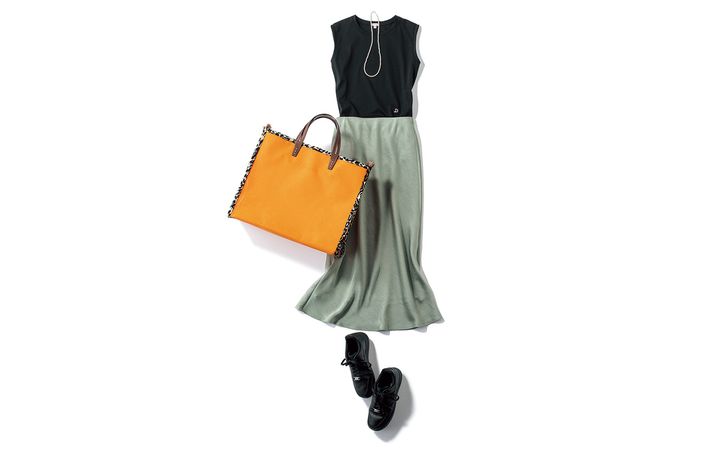 熱中症警戒アラート発動につき、体に熱がこもりにくい接触冷感素材のノースリで出陣。はぁ…せっかくメークしたのに、朝から顔面ドロドロで泣ける。東さんが「これ使ってみて!」と渡してくれたドライシャンプーシートが、ひんやりすっきり最高。なんたる慈愛、さすが東さん…!バッグ¥47,300(ア ヴァケーション/ノーベルバ)ネックレス¥39,380(バルブス/ZUTTOHOLIC)
