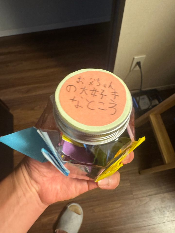 フタには「おとうちゃんの大好きなところ」という文字が。三男も年長になり、文字が書けるようになってきているからか、妻が仕掛けたのだとは思いますが、ちょっと嬉しかったですね。一つ一つ噛み締めながら読みました。その中からいくつかご紹介しましょう。