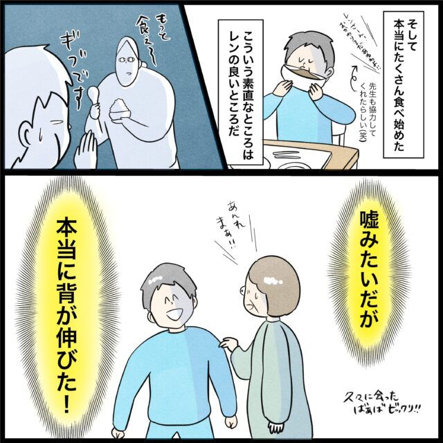 はんままさんの着眼点が素晴らしいですね!身体が大きくなって自分に自信がついて怖さを乗り越えたレンくん。レンくんに笑顔が戻って本当によかったです!