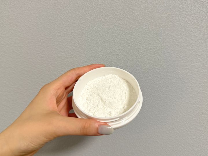 パウダーを適量つけて、乾いたお肌に軽く抑えるようにのせます。