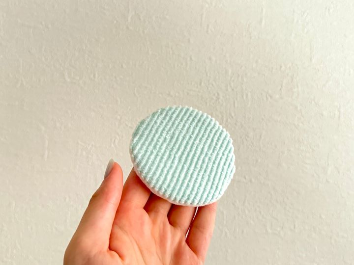 パフは、肌あたりがやさしく、大きめなのでボディに使いやすい◎