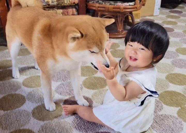 泣いてる1歳児を笑顔にさせる柴犬が話題に!「あやし方も優しくて上手」「ワンちゃんセラピーは赤ちゃんにも有効ですね」