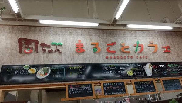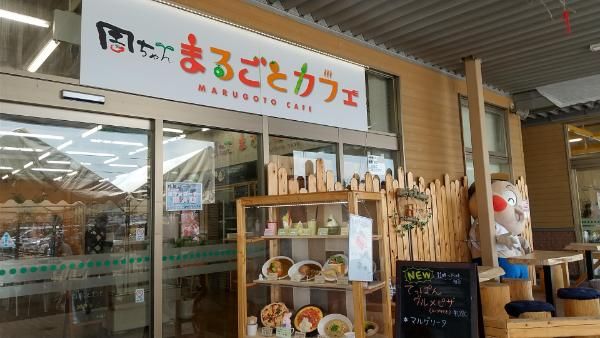 西条市、周越農道沿いにある産直市「周ちゃん広場」の一角にまるごとカフェはあります。店内は広くて、どなたでも休憩所として利用もできます。