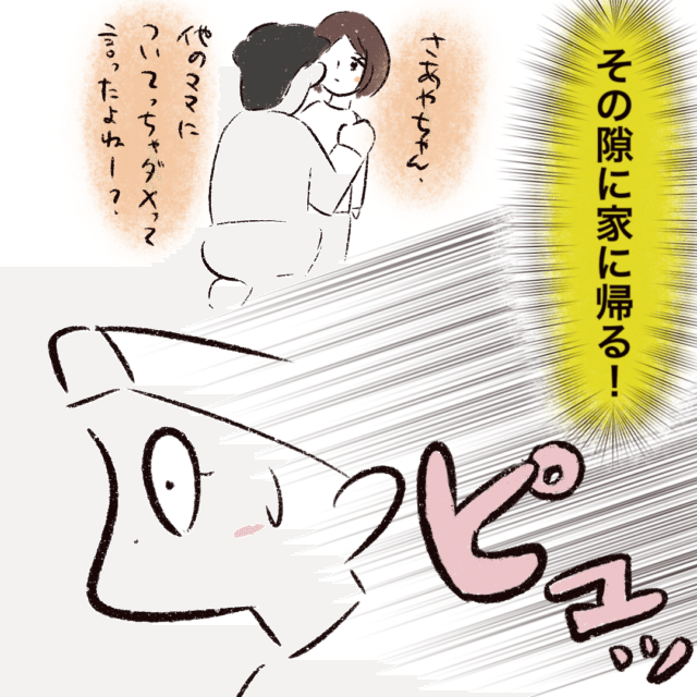 母親に抱っこされているおーちゃんの弟の靴に「おうすけ」と名前が書いてあるのを見たまるさんは、さあやちゃんが名乗っている「おーちゃん」という名前は弟の名前なのではないかと感じます・・・。