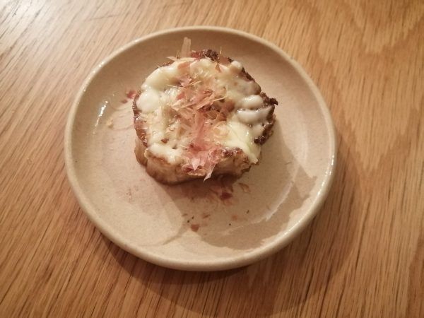 3.2の上にめんつゆをかけて、マヨネーズ、チーズをのせて弱火で焼く
