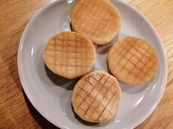 大根の苦みが苦手な子でもステーキにすると食べやすくなる!切った後に半日くらい干してから調理すると甘みが増しますよ。