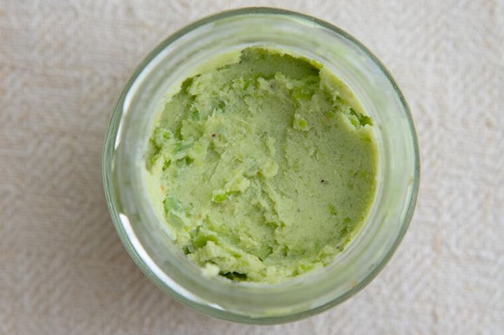 つぶしたそら豆にバターを加えてなめらかになるまで混ぜ、塩と胡椒で味をととのえる。
